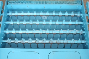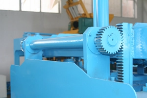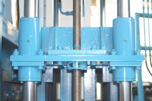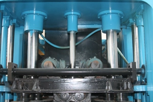 На горниот калап има цилиндри од дрво. Средниот го обезбедува забрзувањето на кревањето, а другите две од двете страни го обезбедуваат притисокот на горниот калап.